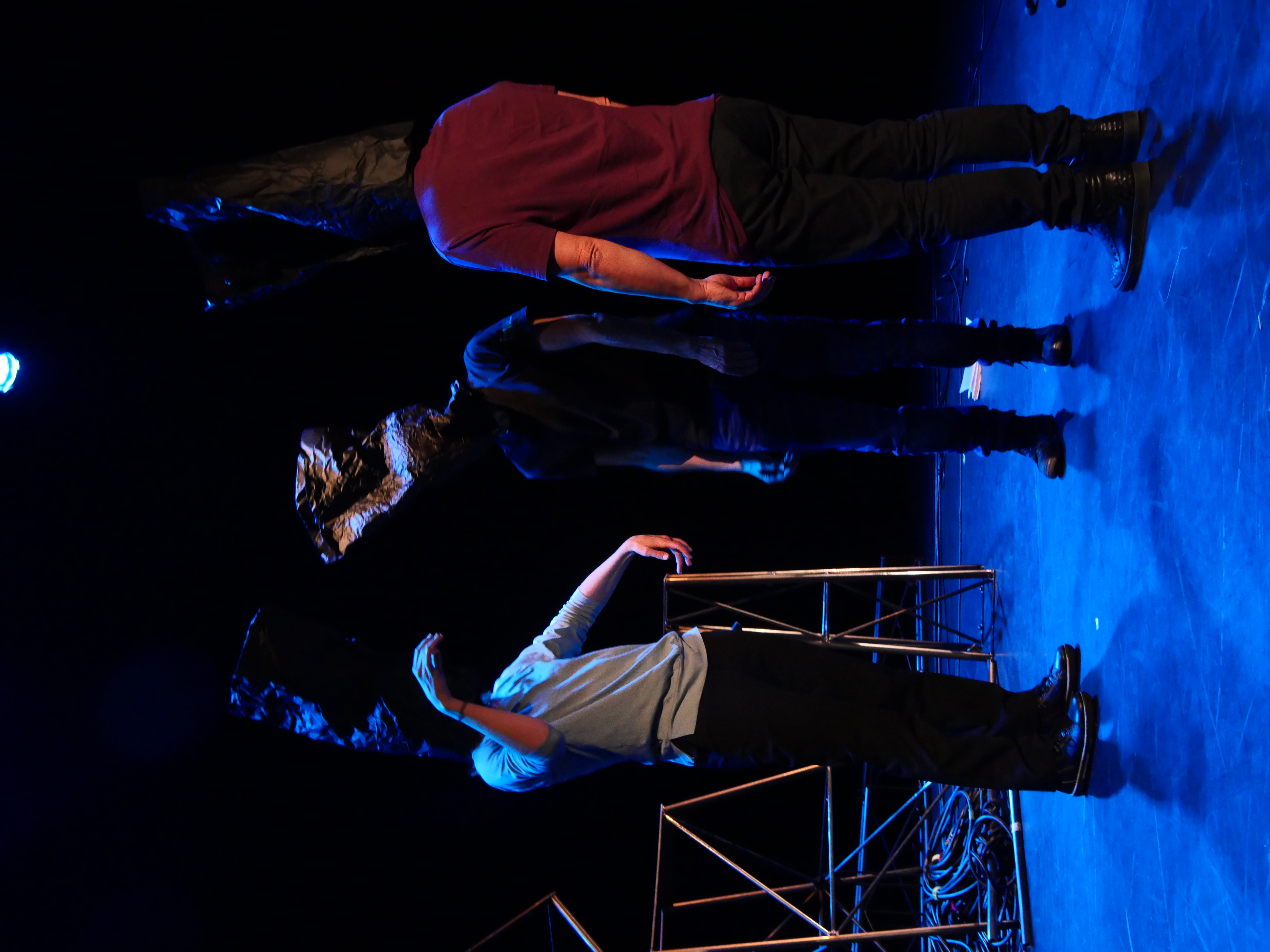 L'équipe artistique brasse les concepts d'effondrement et de chute. Nous interrogeons par le texte, la musique et les corps les manières dont nous traversons ces crises, dont nous les surmontons. Il est beaucoup question d'aveuglement volontaire ou pas, de peur, de gâchis, de deuils, de temps qui passe, mais également d'espoir, de changement de paradigme, de projections désirables. Les faits d'actualité et les ouvrages scientifiques alimentent nos recherches, nos émotions et réflexions leur donnent corps, nos rencontres artistiques au plateau dessinent notre récit.